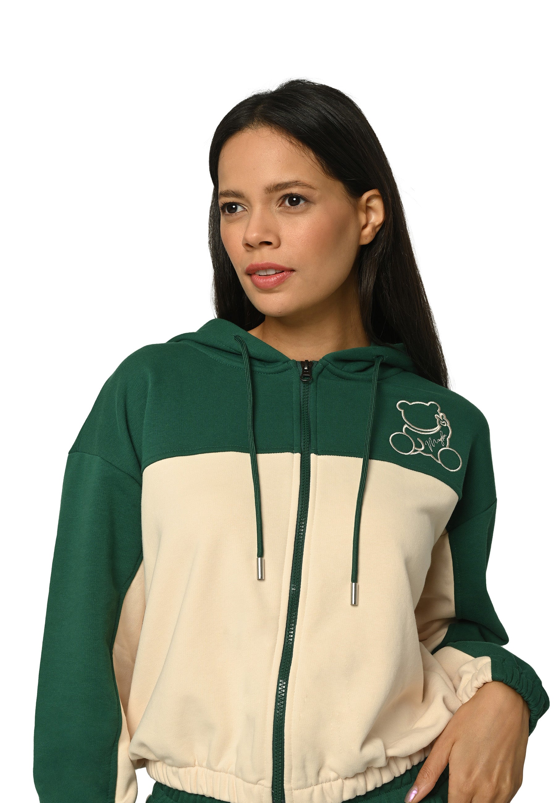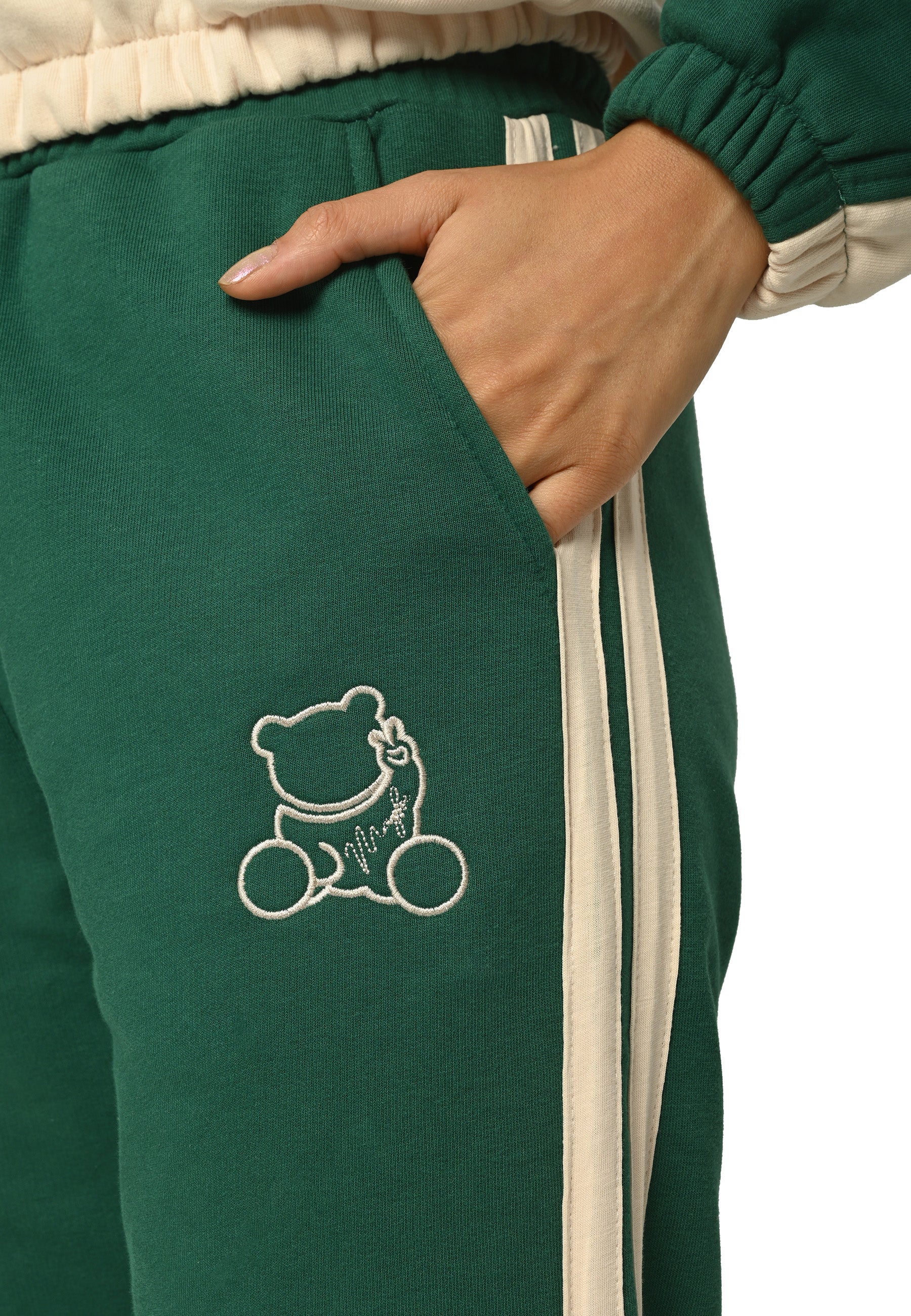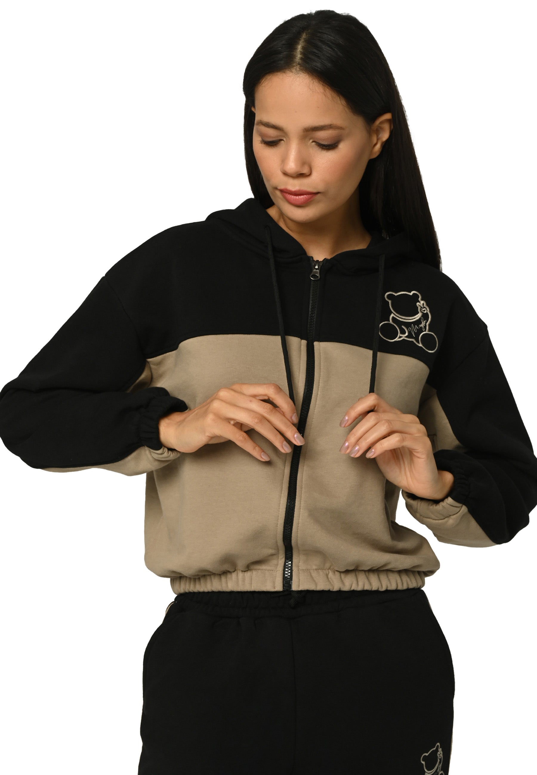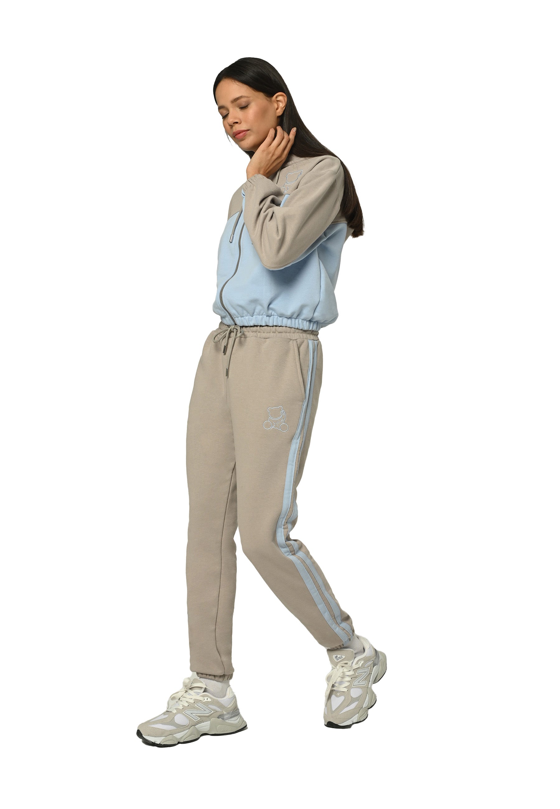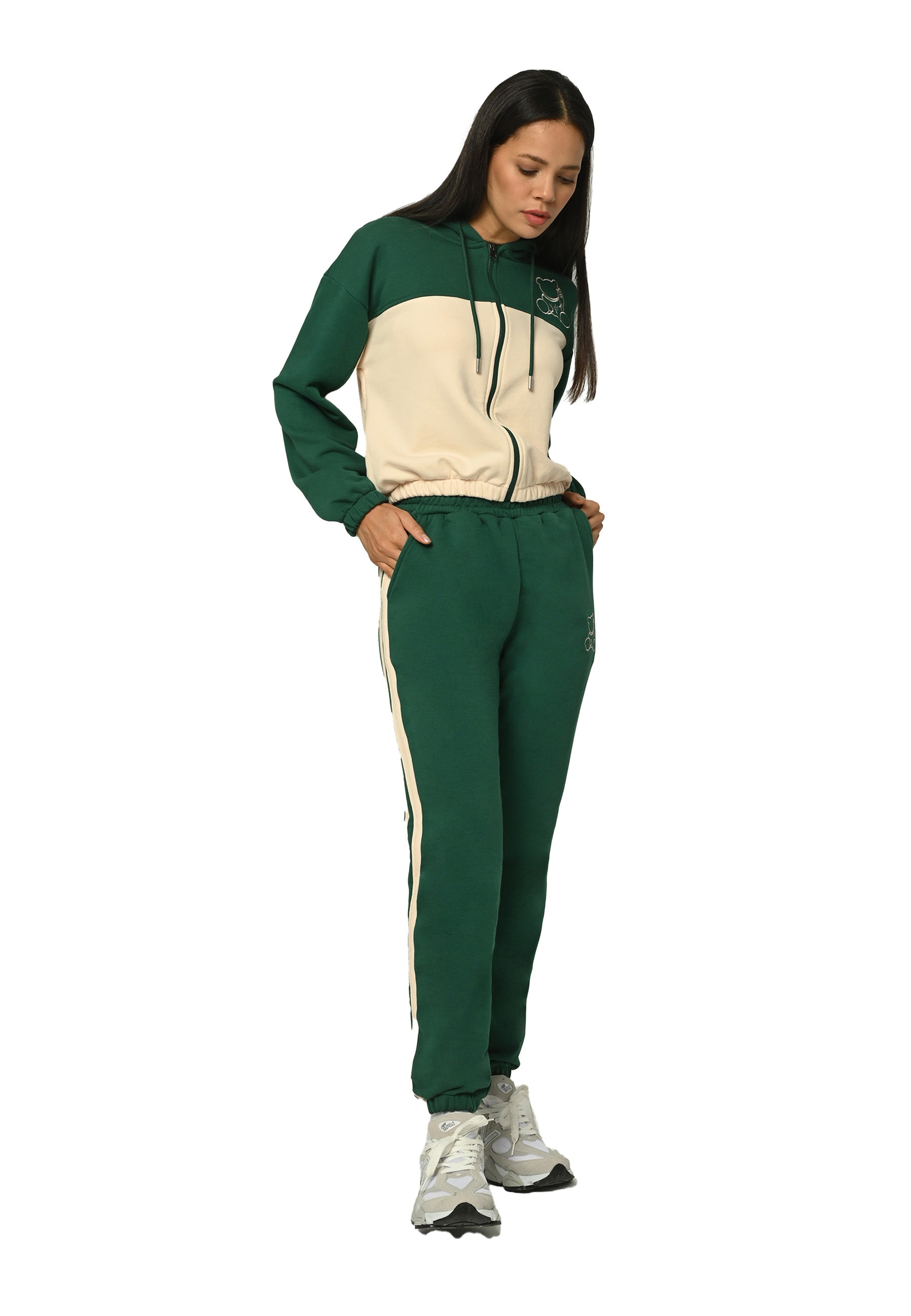This tracksuit set features bear embroidery on a zip-up hoodie with a flexible fit. It is crafted from soft, breathable fabric for maximum comfort.