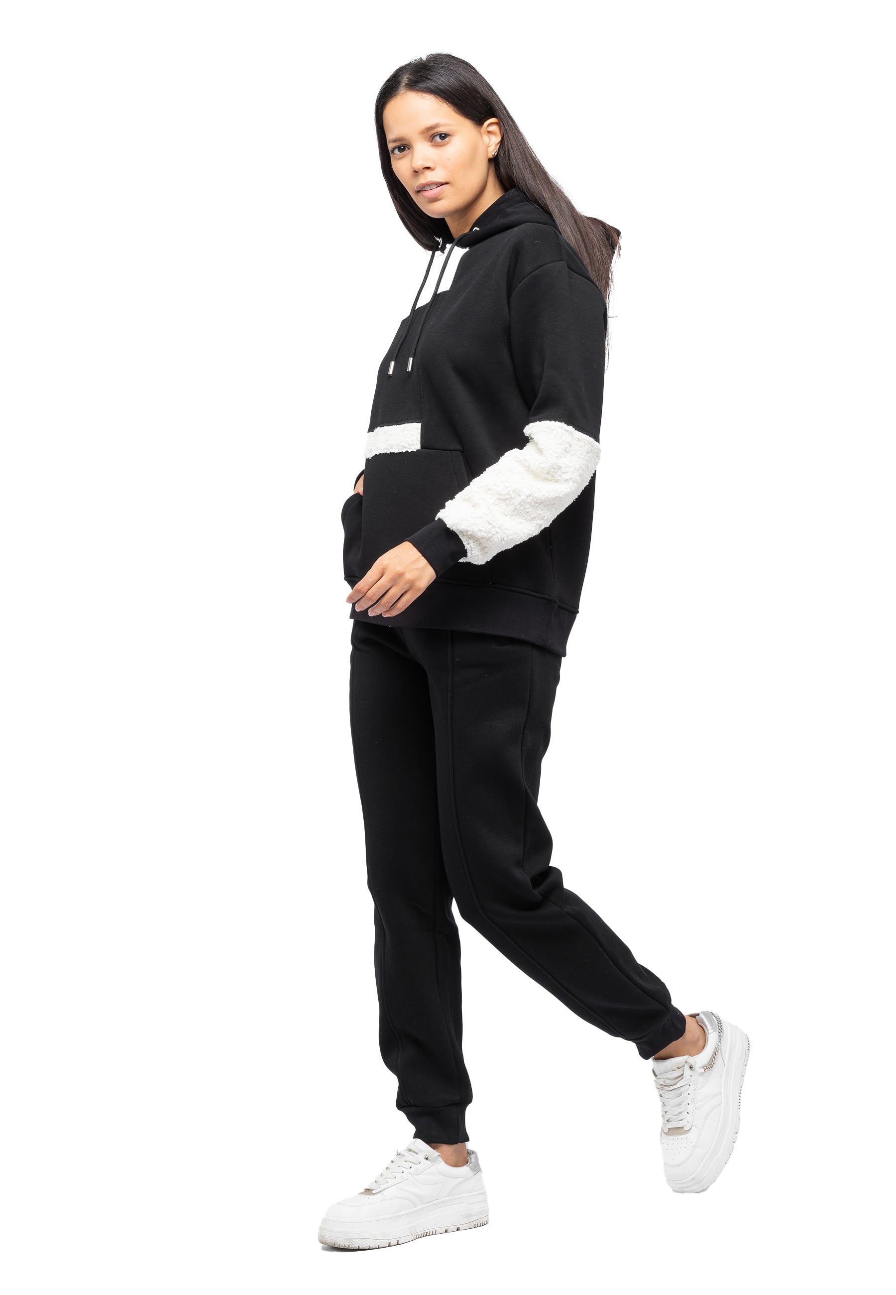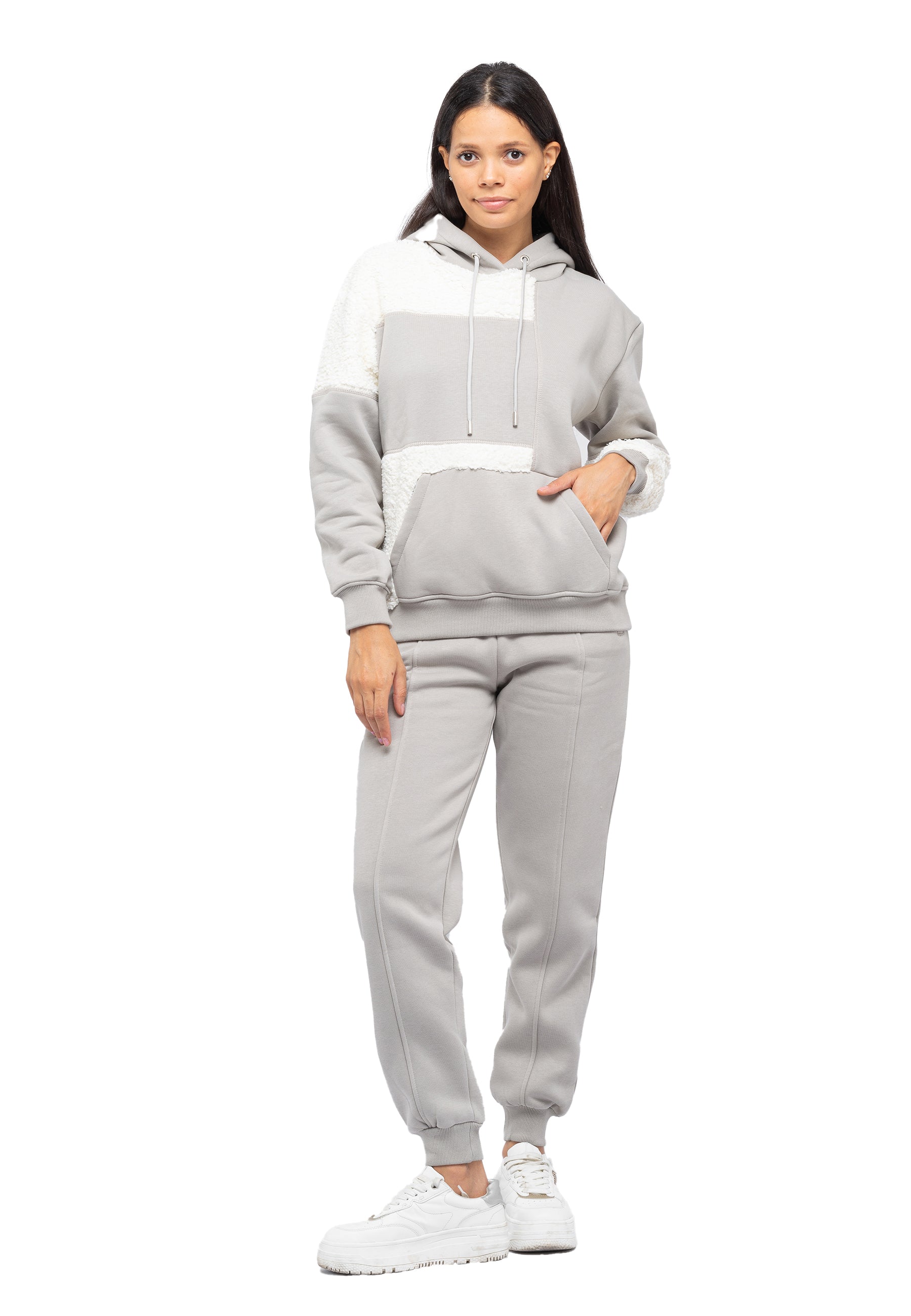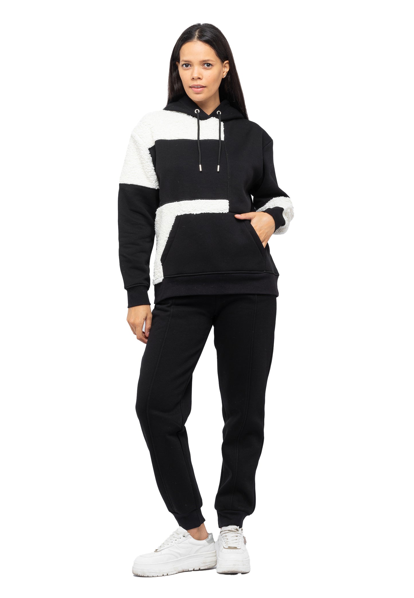 Our duo-color tracksuit is a two-piece set that includes a hoodie and matching joggers. It is crafted from high-quality materials and features a trendy duo-color pattern. The hoodie provides warmth and versatility, while the joggers offer a relaxed fit.