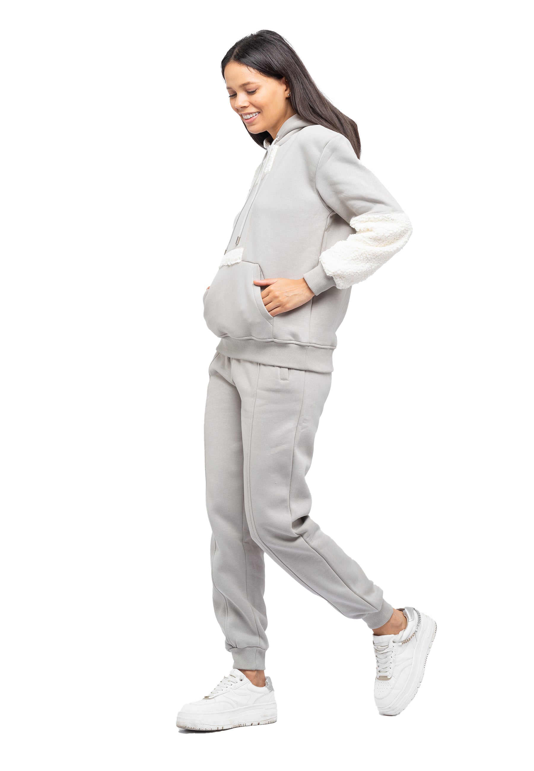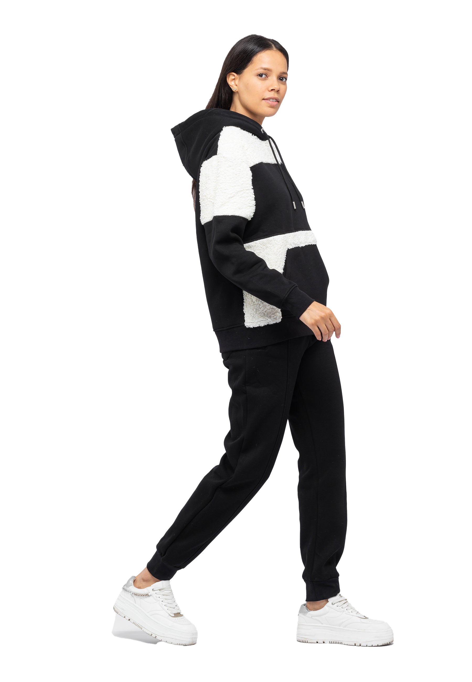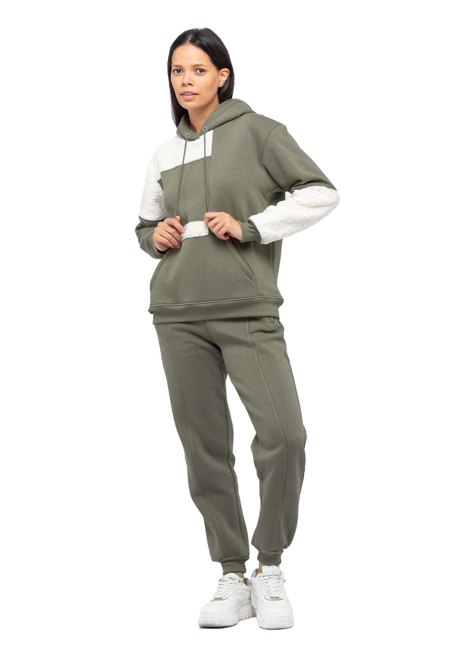 Our duo-color tracksuit is a two-piece set that includes a hoodie and matching joggers. It is crafted from high-quality materials and features a trendy duo-color pattern. The hoodie provides warmth and versatility, while the joggers offer a relaxed fit.