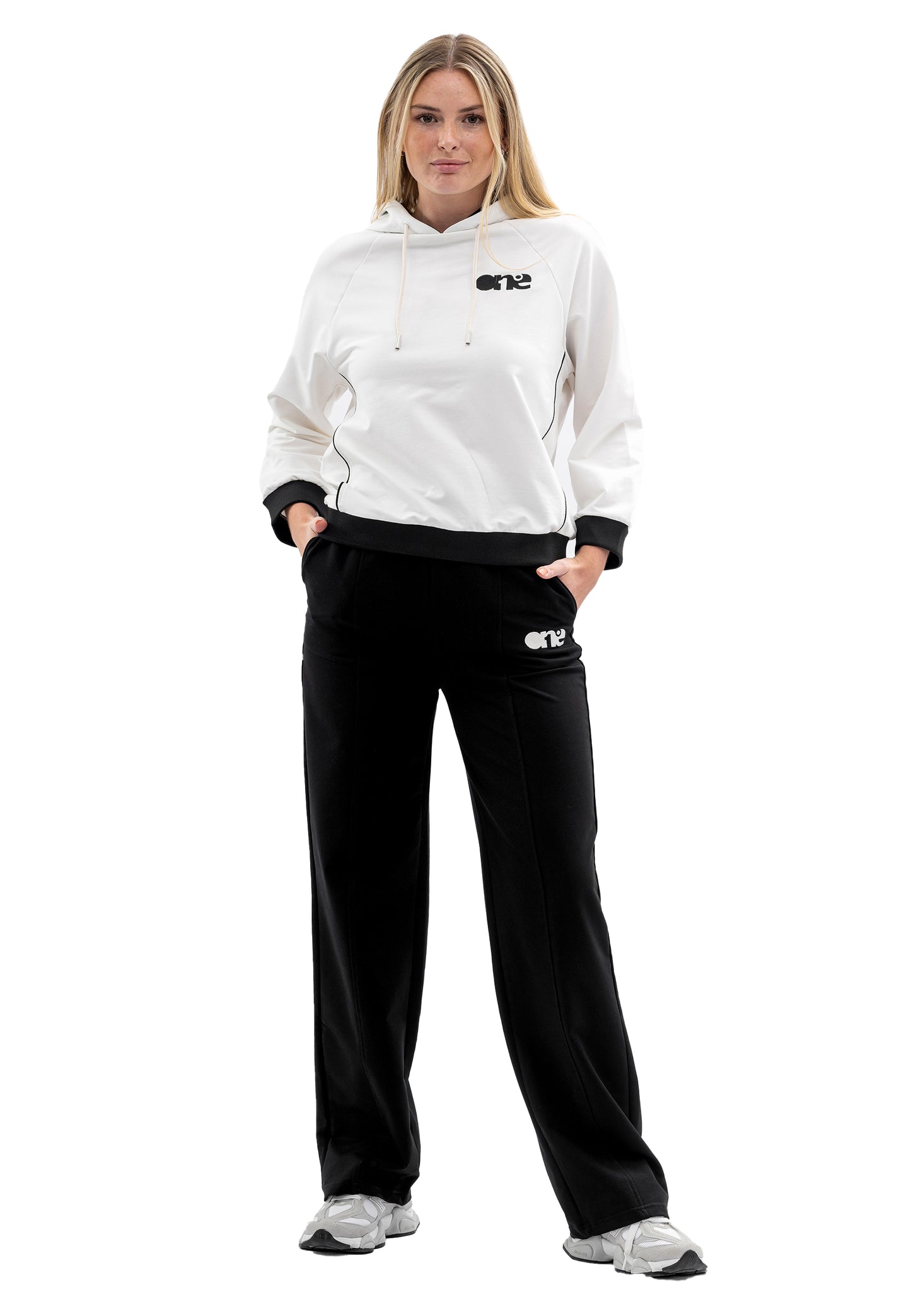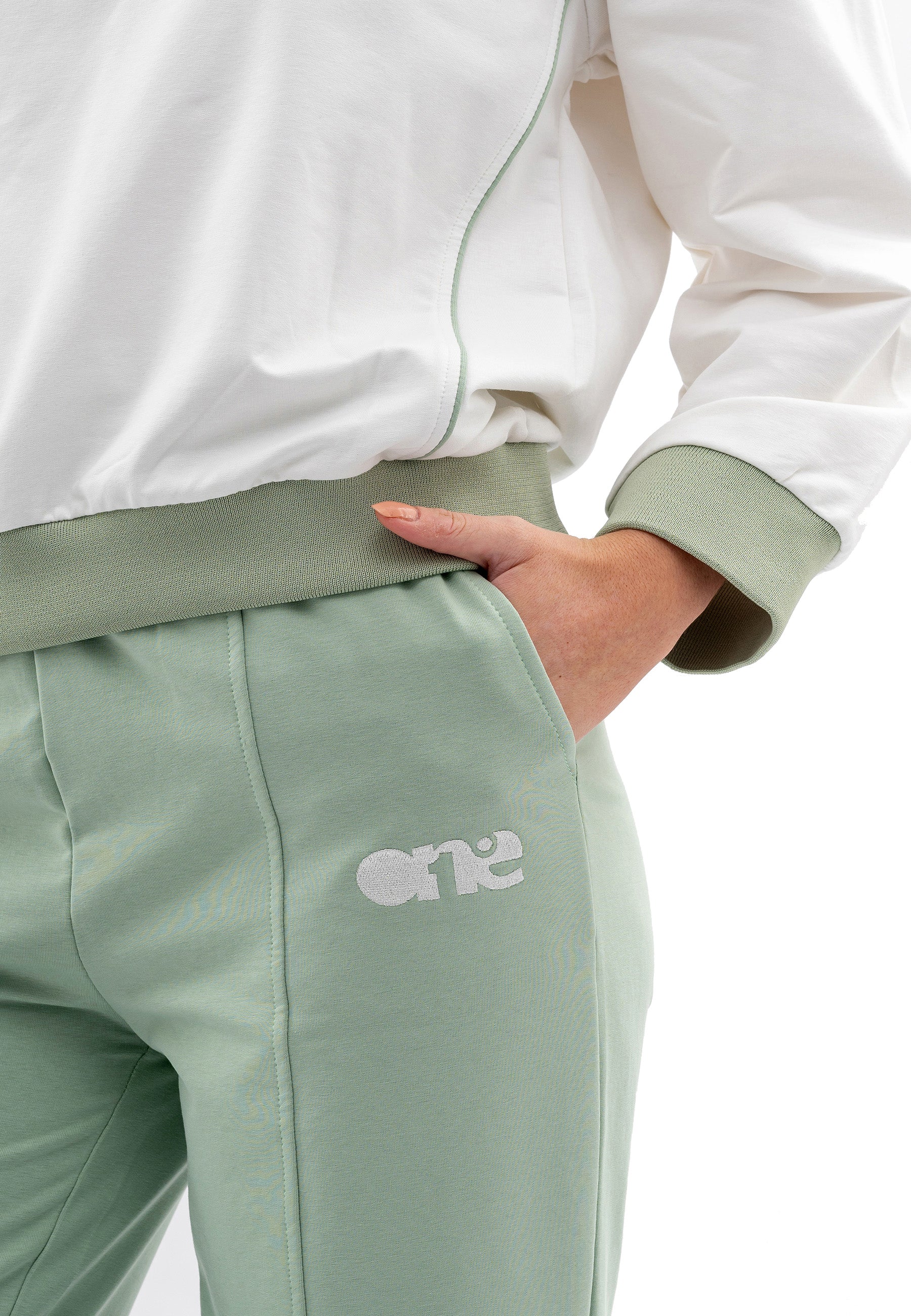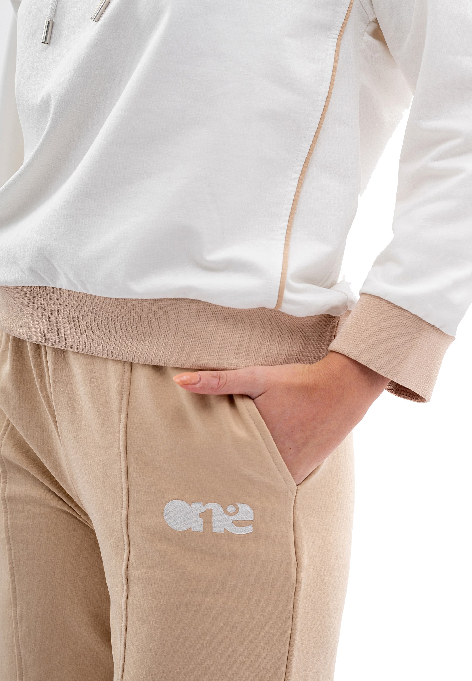 The set includes a women's embroidered hoodie with a 'One' script on the front, adding a unique and stylish detail. Crafted from soft ribbed fabric, the hoodie offers a cozy and flattering fit.